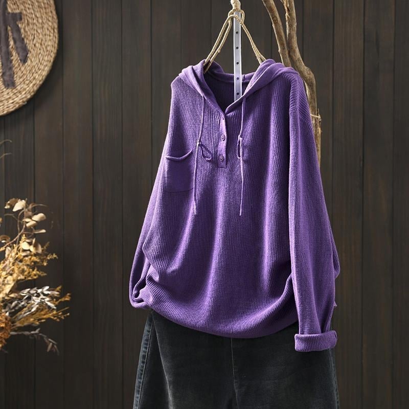 Violets adīts džemperis ar kapuci un aukliņu, slinks stils, sieviešu brīvs, ikdienas, brīvs džemperis ar garām piedurknēm, sieviešu apģērbs rudenim un ziemai
