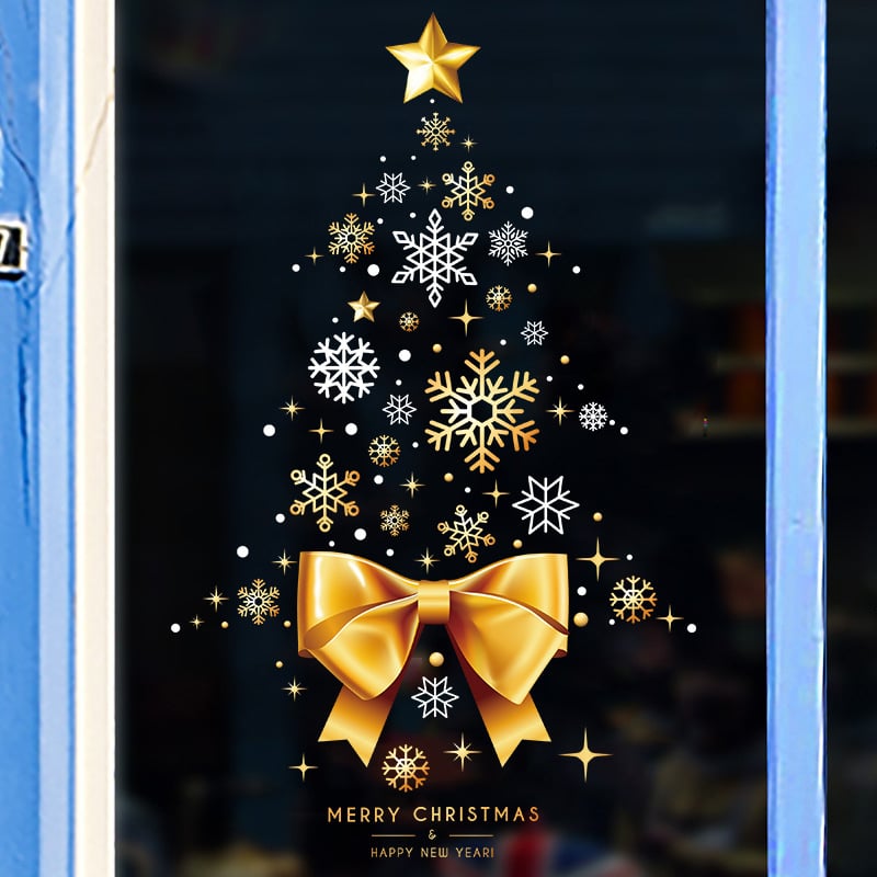 Badu nav atbildīgs par pirkumu Ziemassvētku rotājumi 2025. gada Ziemassvētku logu stikla uzlīmes, zeltainas Ziemassvētku eglītes uzlīmes, durvju un logu vītņu statiskās uzlīmes No Стикери за стена Ārpus pasūtījuma formas.
